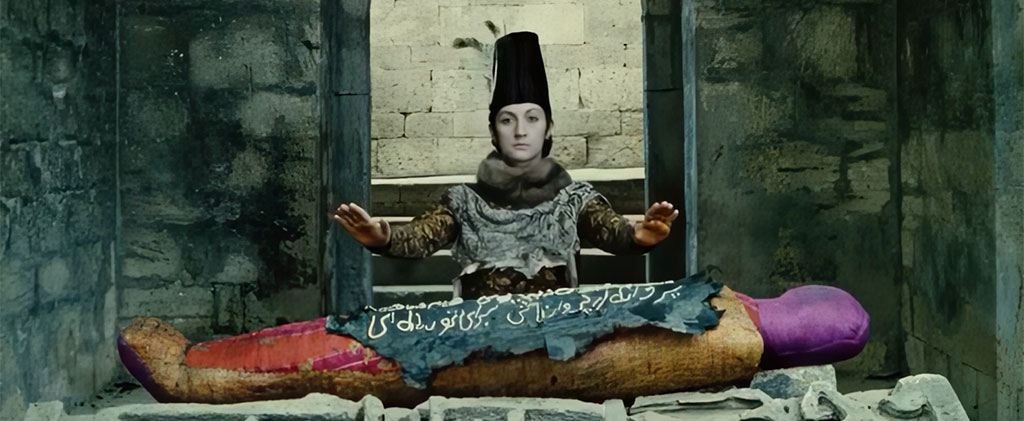 Mnohé zábery prezrádzajú Parajanovovu posadnutosť výtvarným umením. Parajanov používa pravé rekvizity – kostýmy, šperky, zbrojárske a hrnčiarske výrobky, staré knihy, komponuje zátišie, točí v historických areáloch. Všetko na plátne nesie pečať dotyku ľudských rúk, ktoré veci buď vyrobili, alebo používali, cítime v nich tiene zabudnutých predkov . Táto okolnosť je možná hlavnou pohnútkou Parajanovovej tvorby – znovu oživiť miznúcu kultúru, najväčšie národné a všeľudské bohatstvo, v ktorej jediné je záruka humanizmu a mravnosti, hodnôt v súčasnosti miznúcich. Toto je hlavný vzorec Parajanovovej tvorby, pre ktorého dôslednú realizáciu bol na sklonku života, kedy mu boli konečne povolené zahraničné cesty, oslavovaný na festivaloch a označovaný za génia. Snímok Ašik-Kerib jeho tvorca venoval pamiatke Andreja Tarkovského. (oficiálny text distribútora)